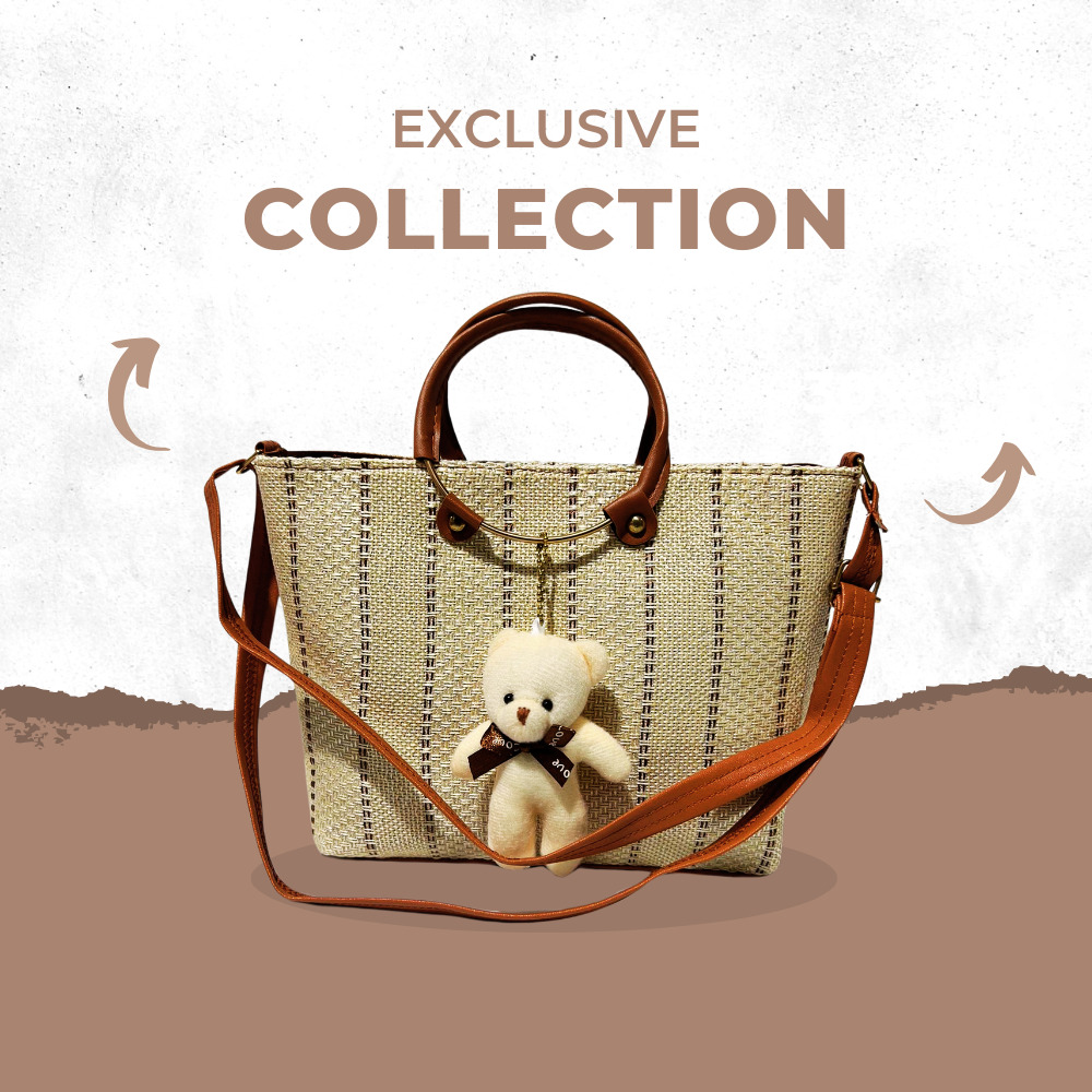 Latest Handbags For Women’s Ladies Women’s Handcrafted Black Color Sling Bag with Taddy bear Shop the Latest Styles Women’s Sling Bags (White, Medium)