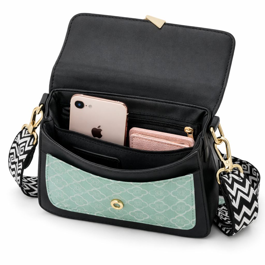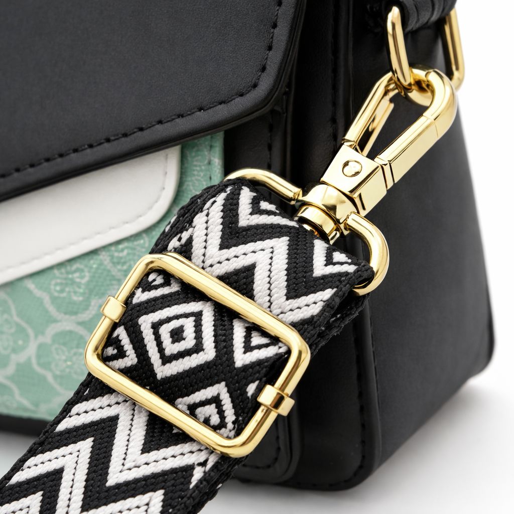 • ADJUSTABLE STRAP: 120-centimetre braided crossbody strap with stylish black and white pattern can be adjusted for comfortable carrying
